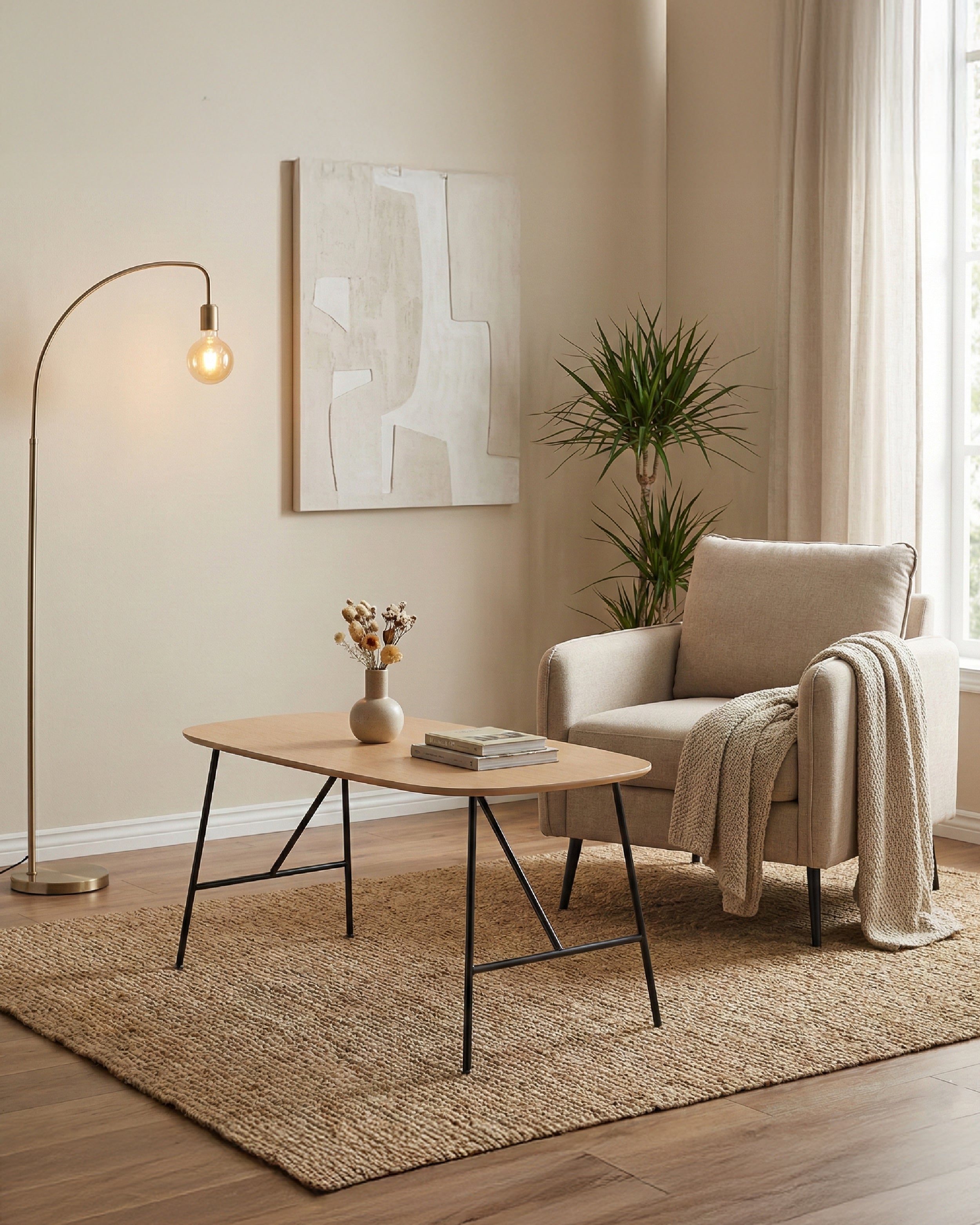 Yes — its minimalist silhouette with natural wood tones and matte black base blends seamlessly with modern, Scandinavian, industrial, or contemporary décor.