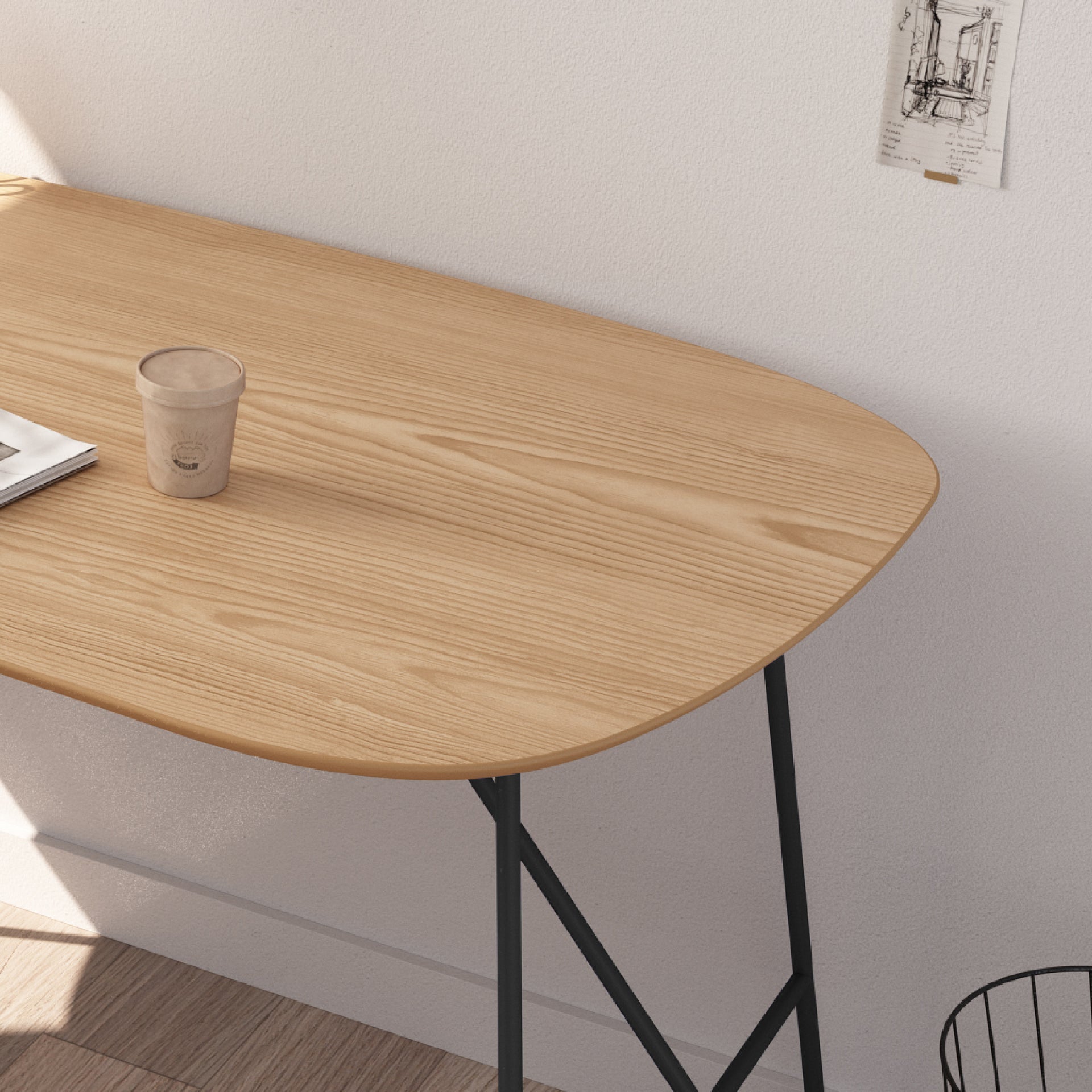 The tabletop uses engineered wood for a natural look with improved resistance to warping and everyday wear, while the base is powder‑coated steel for strong, long‑lasting stability.