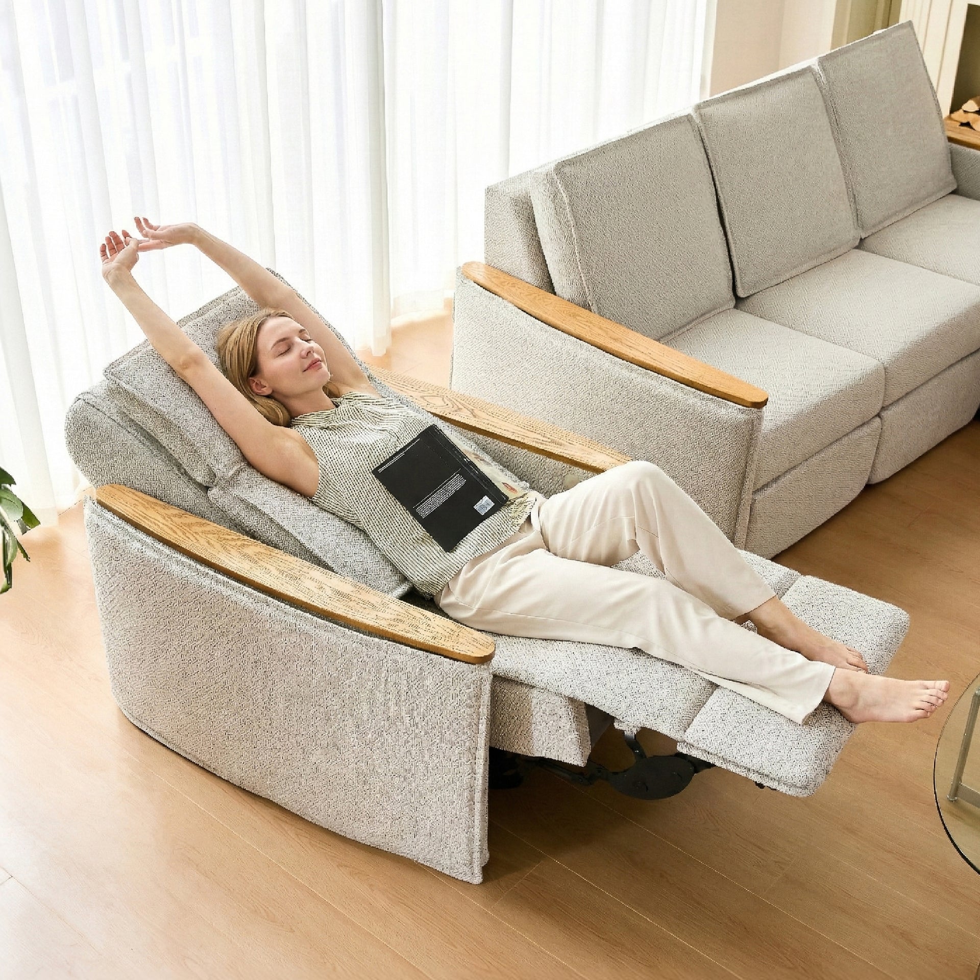 Architectural yet inviting, the COLAMY LUMORA Electric Massage Sofa is designed to elevate everyday relaxation with refined comfort and intelligent functionality. Blending ergonomic structure with a modern recliner silhouette, LUMORA delivers targeted massage, gentle heating, and smooth electric reclining—ideal for unwinding in the living room or bedroom.
