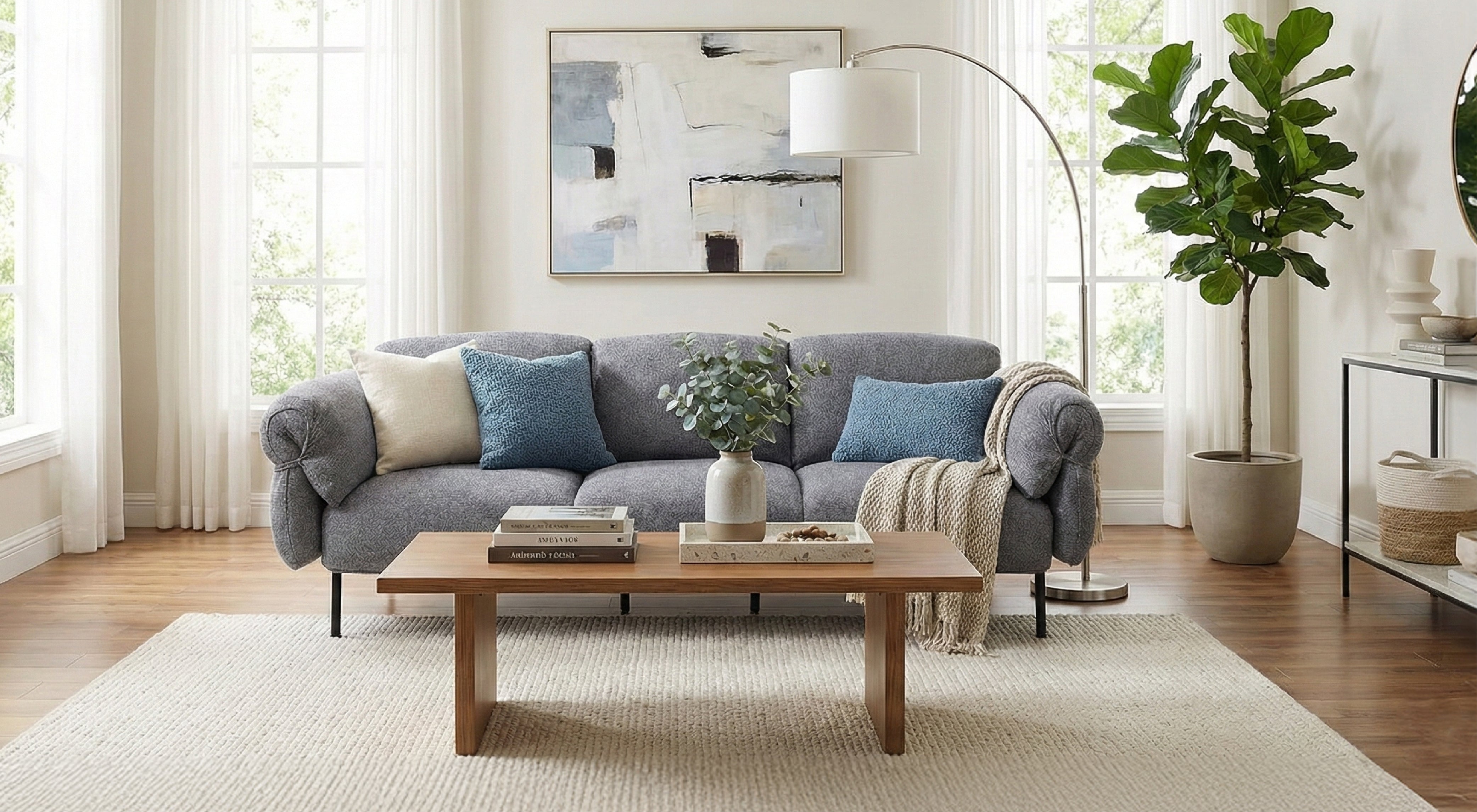 Designed for calm, modern living, the COLAMY PLUME MIST Modern Feather Upholstered Sofa combines soft comfort with refined structure. Its feather-filled cushions deliver a gentle, sink-in feel, supported by high-resilience sponge for lasting comfort. Finished in a sophisticated Mist Blue fabric, this sofa brings a serene, elevated look to contemporary living rooms and lounge spaces.