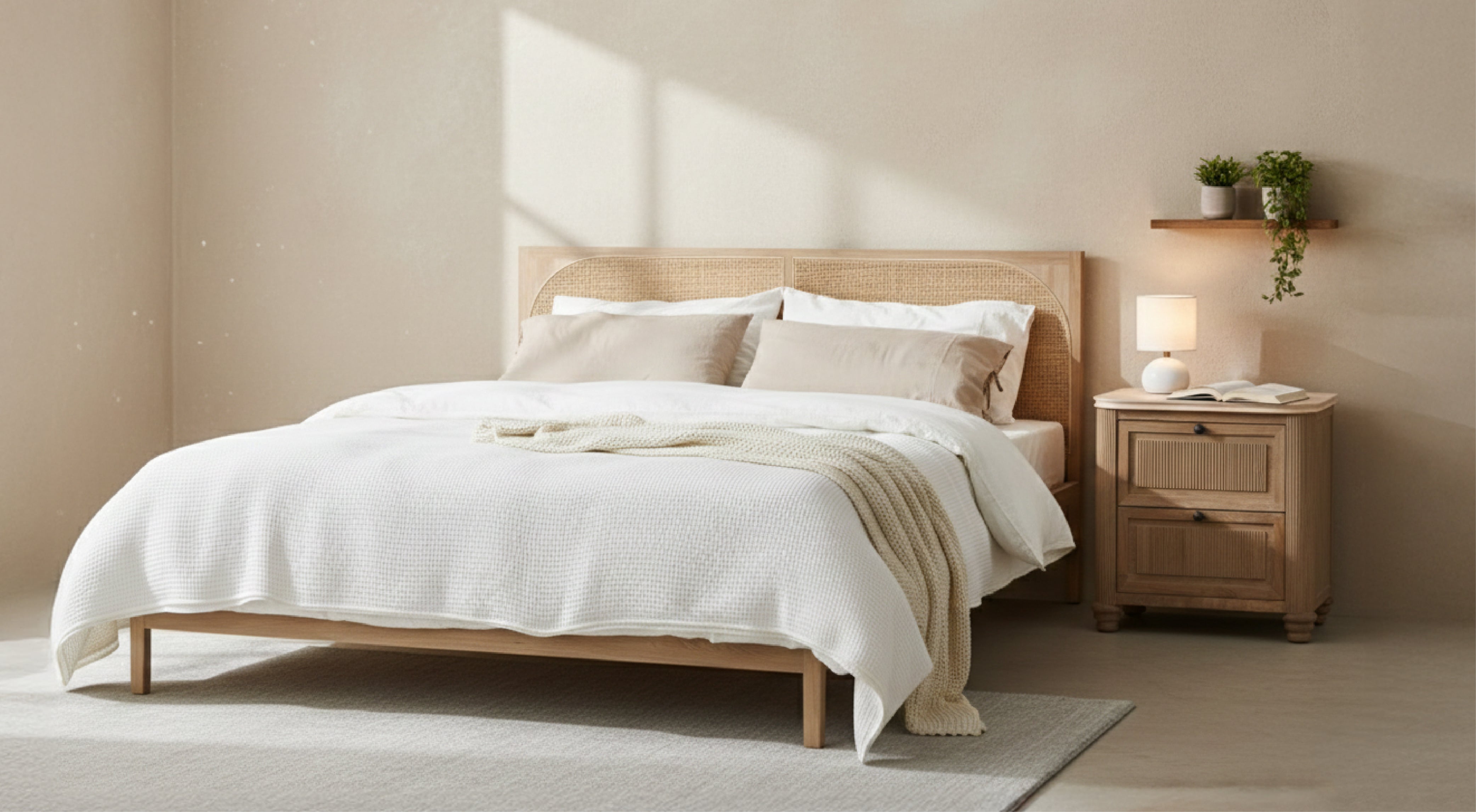 Bring natural warmth and serene minimalism into your bedroom with the COLAMY Oak & Rattan Bed. This beautifully crafted bed features a solid oak frame combined with a woven rattan headboard, creating a breathable, light, and nature-inspired centerpiece for your space.