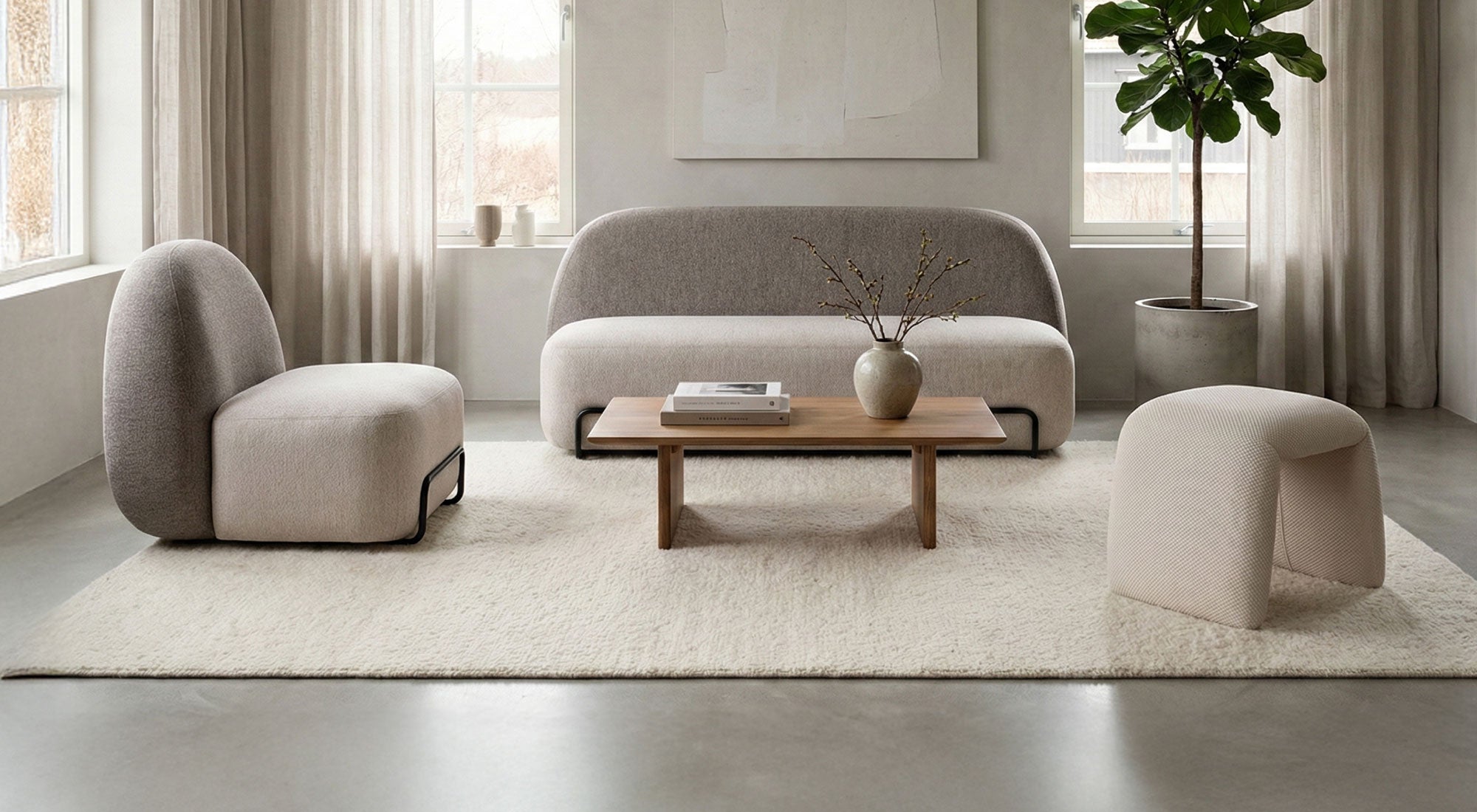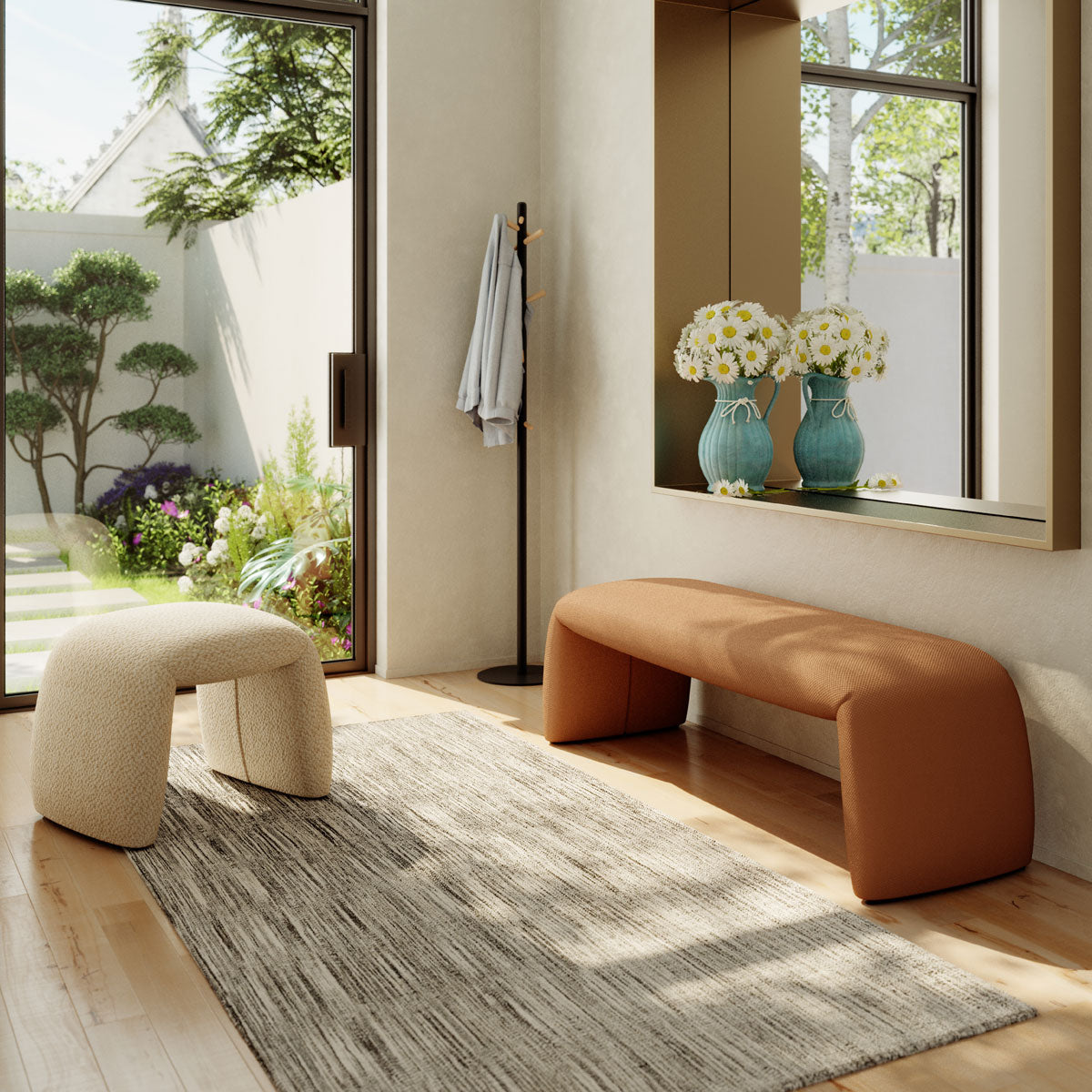 Paired with sculptural cabinets, a modern coffee table, and elegant side tables, SculptBench completes the space with a composed presence—elevating the living room through balance, texture, and proportion.