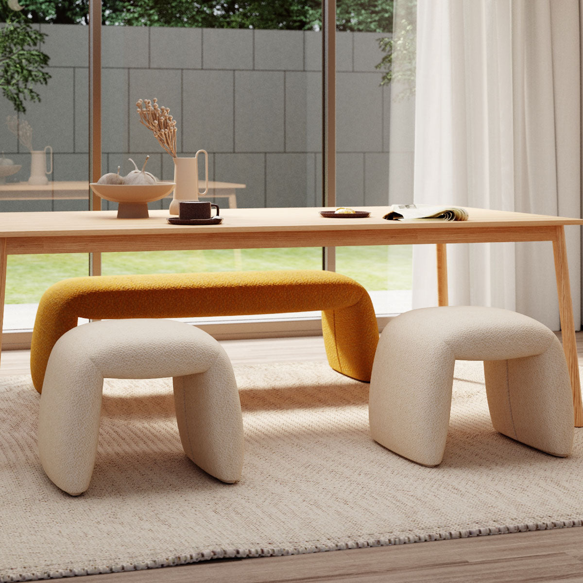 Functional and artistic, the COLAMY SculptU Ottoman merges sculptural design, cloud-like comfort, and minimalist style. Wrapped in luxe bouclé fabric over a reinforced wooden frame, it serves as a versatile footrest, extra seat, or vanity stool, perfect for entryways, living rooms, and bedrooms. Its seamless inverted-U silhouette adds a modern artistic touch to any space.